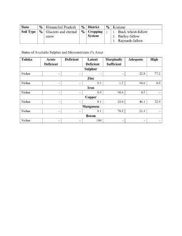 Status of Available Sulphur and Micronutrients (% Area)