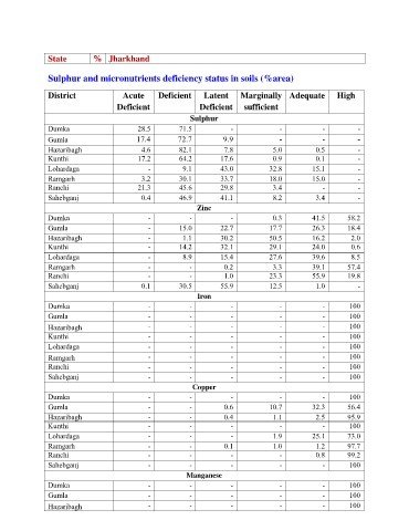 Sulphur and micronutrients deficiency status in soils (%area)