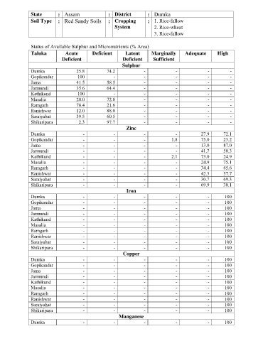 Status of Available Sulphur and Micronutrients (% Area)