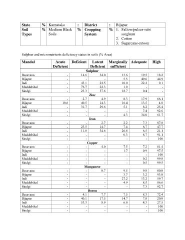 Sulphur and micronutrients deficiency status in soils (% Area)