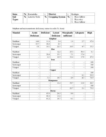Sulphur and micronutrients deficiency status in soils (% Area)