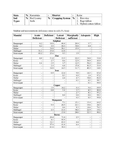 Sulphur and micronutrients deficiency status in soils (% Area)