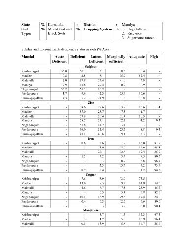Sulphur and micronutrients deficiency status in soils (% Area)