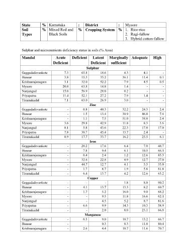 Sulphur and micronutrients deficiency status in soils (% Area)