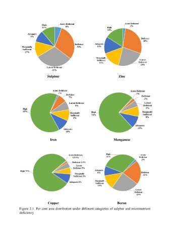Sulphur Zinc Iron Manganese Copper Boron Figure 2.1. Per cent area distribution under different categories of sulphur and micronutrient deficiency