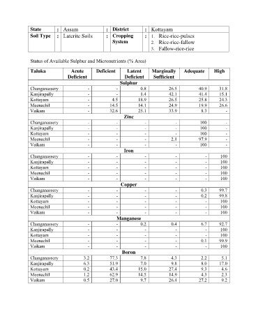 Status of Available Sulphur and Micronutrients (% Area)
