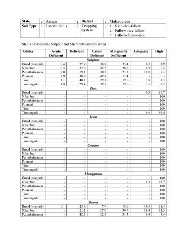 Status of Available Sulphur and Micronutrients (% Area)