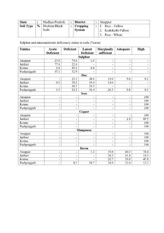 Sulphur and micronutrients deficiency status in soils (%area)