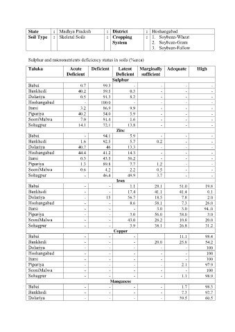 Sulphur and micronutrients deficiency status in soils (%area)