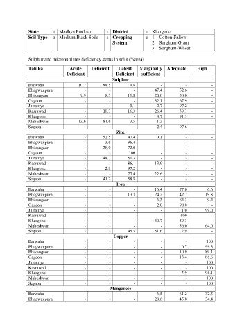 Sulphur and micronutrients deficiency status in soils (%area)