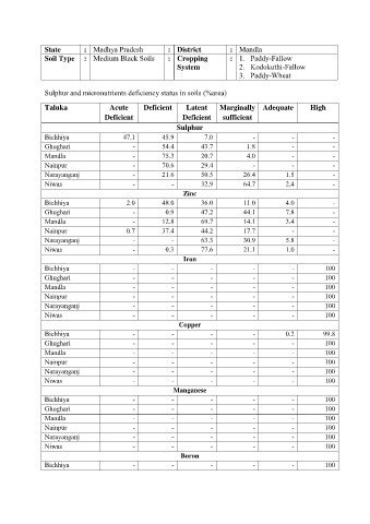 Soil Type : Medium Black Soils : Cropping : 1. Paddy-Fallow