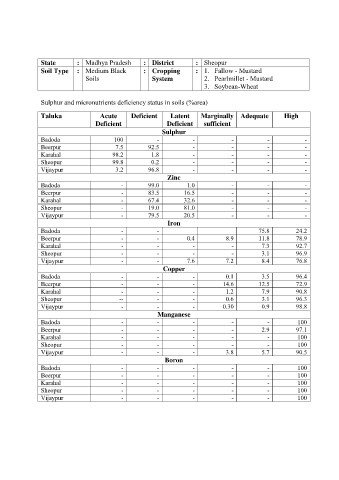 Sulphur and micronutrients deficiency status in soils (%area)