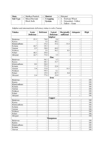 Soil Type : Mixed Red and : Cropping : 1. Soybean-Wheat