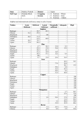 Soil Type : Medium Black : Cropping : 4. Soybean – Wheat