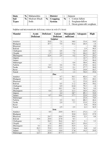 Sulphur and micronutrients deficiency status in soils (% Area)