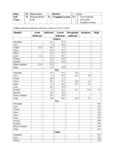 Sulphur and micronutrients deficiency status in soils (% Area)