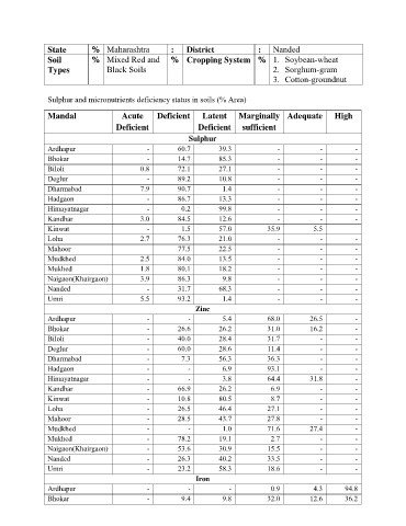 Sulphur and micronutrients deficiency status in soils (% Area)
