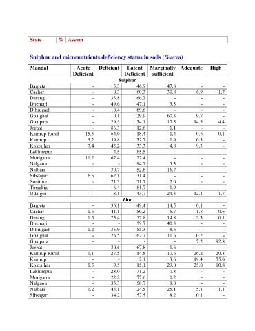 Sulphur and micronutrients deficiency status in soils (%area)