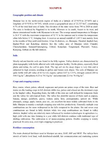 hills. Manipur is mainly a multiple cropping area with low productivity. Generally multiple crop