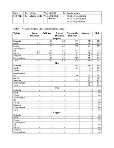 Soil Type % Laterite Soils % Cropping : 31. Rice-blackgram