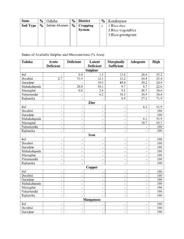 Soil Type % Deltaic Alluvium % Cropping : 1.Rice-rice