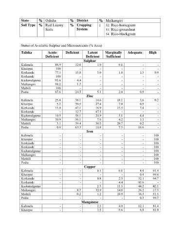 Status of Available Sulphur and Micronutrients (% Area)