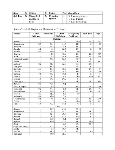 Status of Available Sulphur and Micronutrients (% Area)