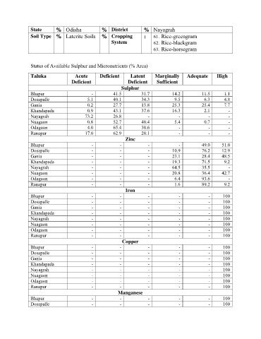 Status of Available Sulphur and Micronutrients (% Area)