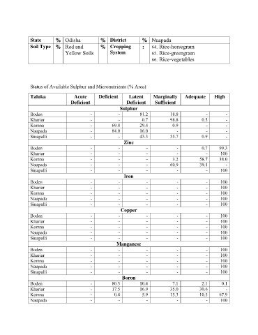 Status of Available Sulphur and Micronutrients (% Area)
