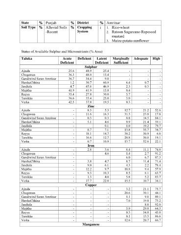 Status of Available Sulphur and Micronutrients (% Area)
