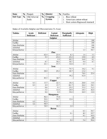 Status of Available Sulphur and Micronutrients (% Area)