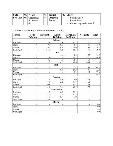 Status of Available Sulphur and Micronutrients (% Area)