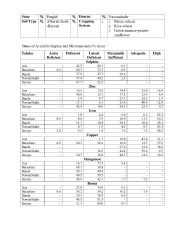 Status of Available Sulphur and Micronutrients (% Area)