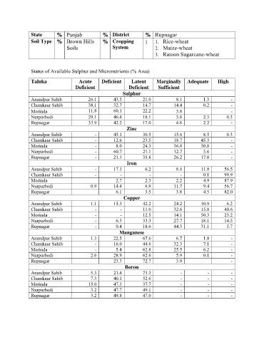 Status of Available Sulphur and Micronutrients (% Area)