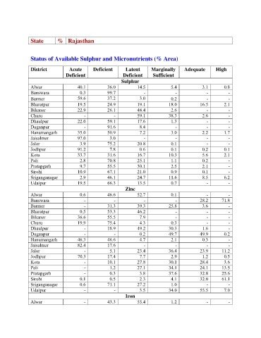 Status of Available Sulphur and Micronutrients (% Area)