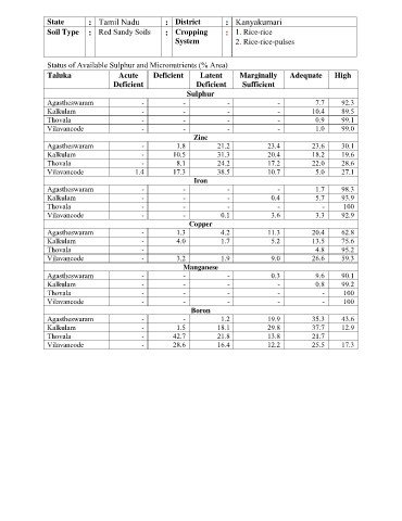 Status of Available Sulphur and Micronutrients (% Area)