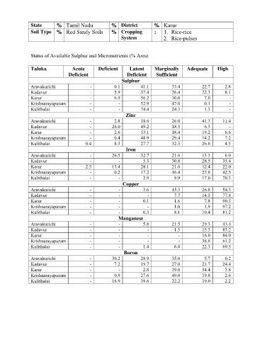 Status of Available Sulphur and Micronutrients (% Area)