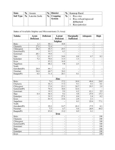 Status of Available Sulphur and Micronutrients (% Area)