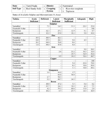 Status of Available Sulphur and Micronutrients (% Area)