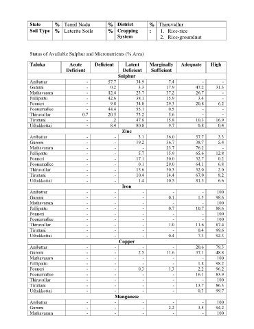 Status of Available Sulphur and Micronutrients (% Area)