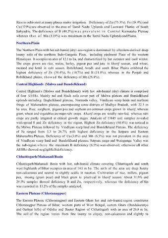 Rice is cultivated at many places under irrigation. Deficiency of Zn (73.3%), Fe (18.9%) and