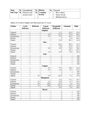 Status of Available Sulphur and Micronutrients (% Area)