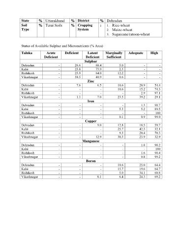 Status of Available Sulphur and Micronutrients (% Area)