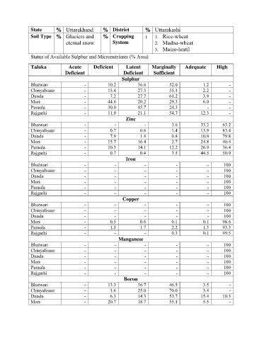 Status of Available Sulphur and Micronutrients (% Area)