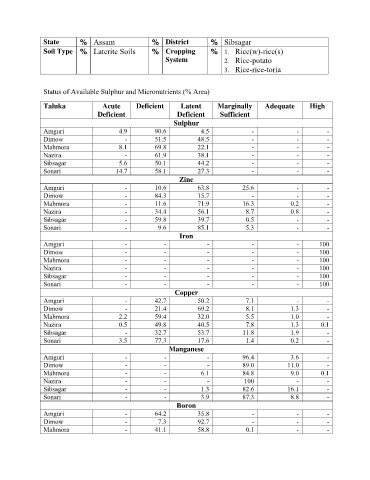 Status of Available Sulphur and Micronutrients (% Area)