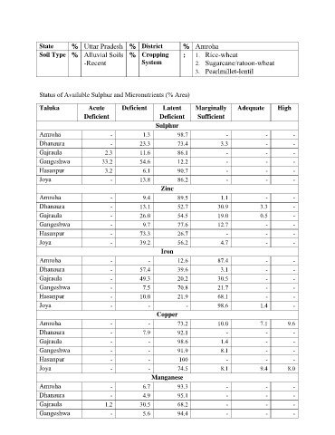 Status of Available Sulphur and Micronutrients (% Area)
