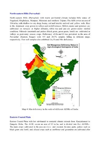 Map 4. Mn deficiency in the soils of different AESRs of India