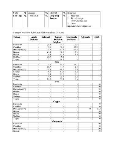 Status of Available Sulphur and Micronutrients (% Area)
