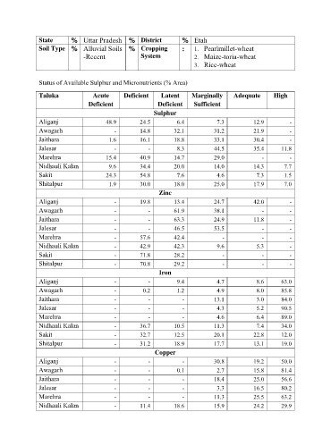 Status of Available Sulphur and Micronutrients (% Area)