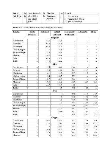 Status of Available Sulphur and Micronutrients (% Area)